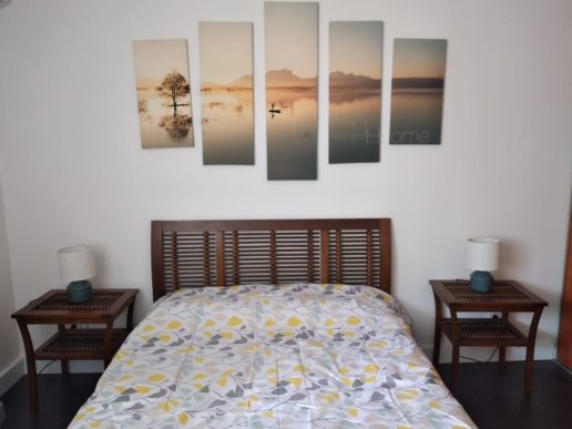 Lit, grand placard et climatisation.